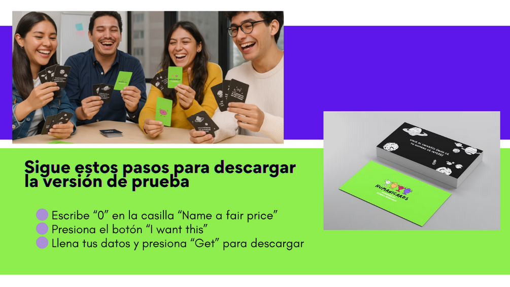 Esta es una guía introductoria a Humanicards, una herramienta lúdica diseñada para activar la empatía, la creatividad y la conexión profunda con humanos, clientes, usuarios, equipos o comunidades. Incluye un manual de uso y un set de tarjetas de prueba que permiten imaginar desde la perspectiva de otro, explorar su mundo emocional y generar ideas poderosas para el diseño de experiencias, productos o conversaciones significativas.